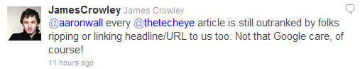 Google whacking a webmaster & then paying someone to steal their content is no different than a crooked bank that commits accounting fraud & then throws their own customer in jail for the crime the bank committed! It could become temporarily inconvenient if the press covers it, but until then who cares?