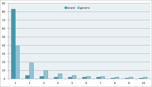 If a lot of people click on the top result & very few people click on the second or third result there is a strong chance the keyword is a brand. If the click distribution is spread more evenly across the search results then it is less likely to be a brand keyword.